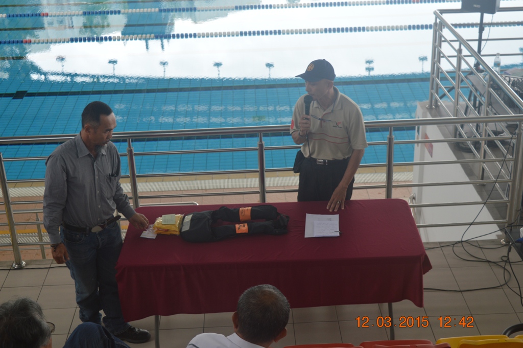 En. Zainal Abidin, Briefing on the Life Saving Jackets and Functions with the help from En. Davwis from Industrial Scientific